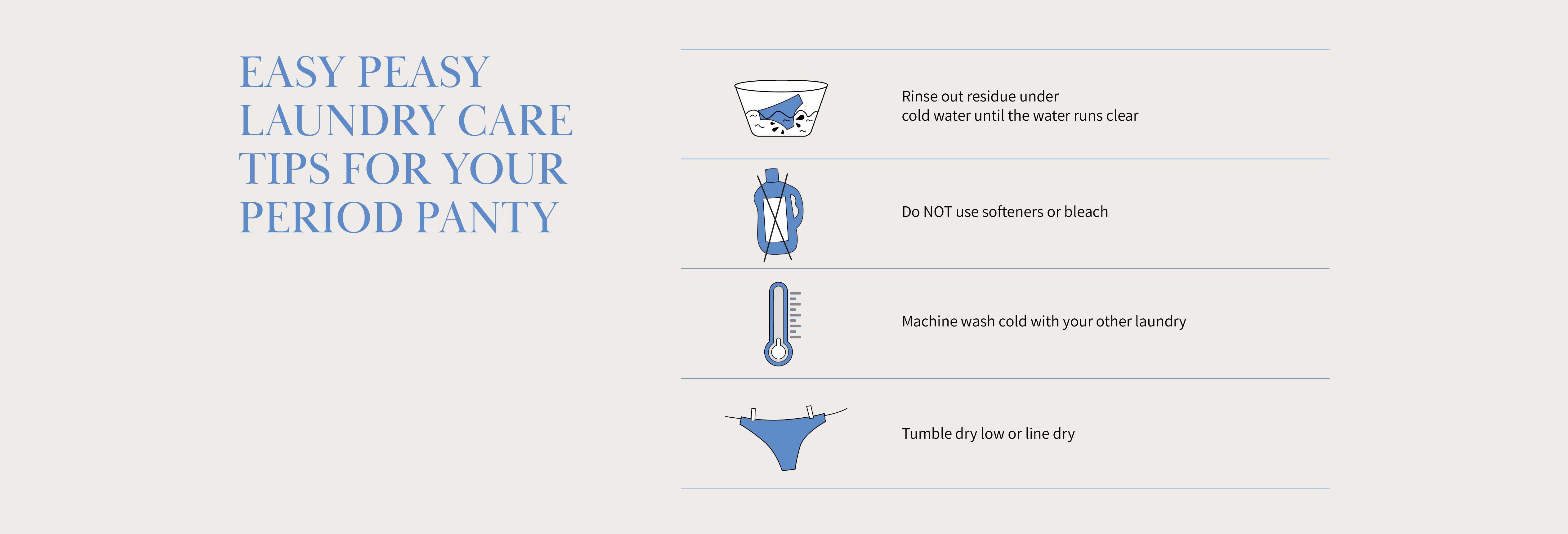 Rinse your used period panty under cold water until the water runs clear. Once you remove the residue, you can opt to handwash your panty as usual or toss it into the washing machine in a cold wash with the rest of your laundry.