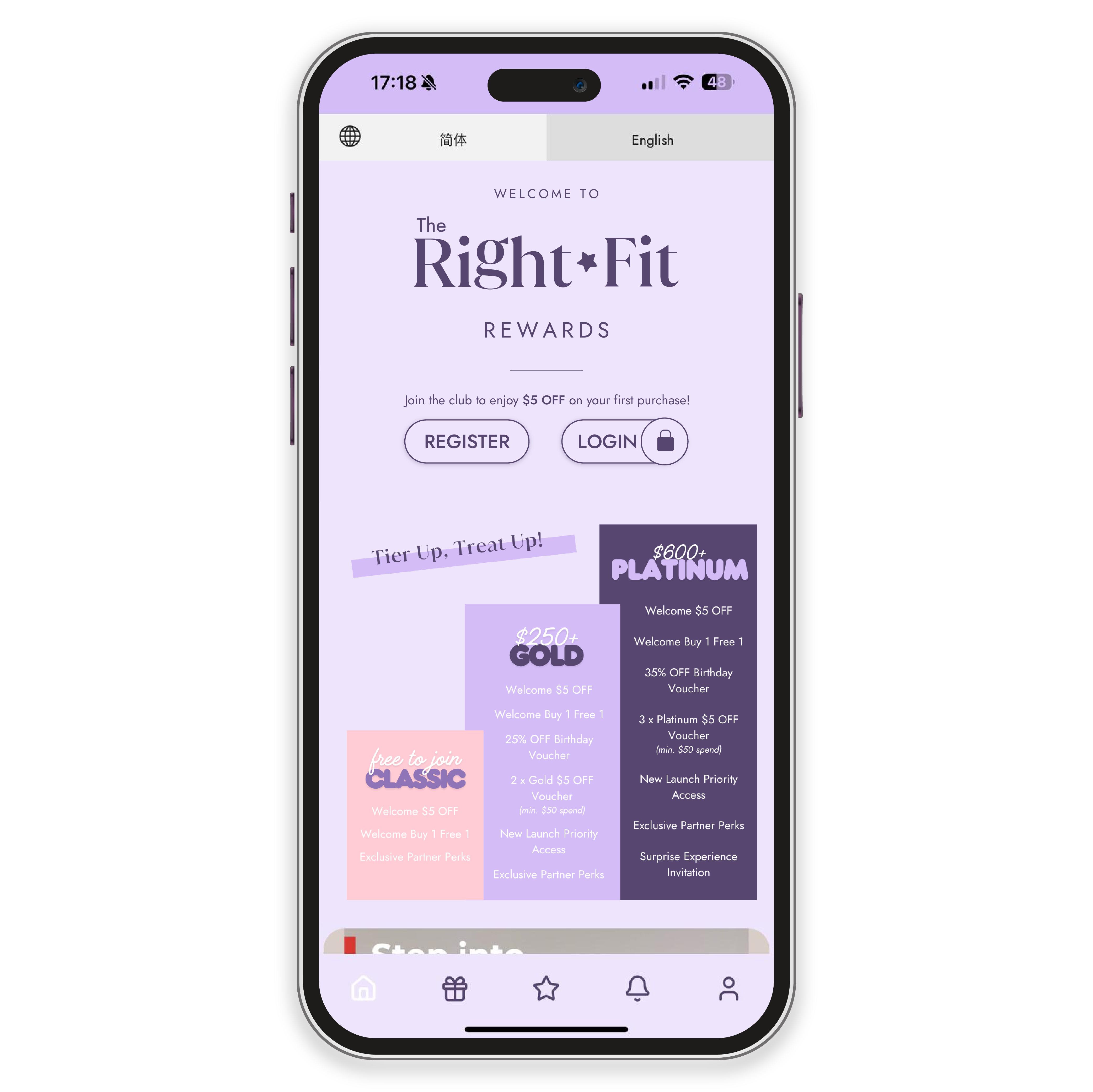 Simply log into your The Right Fit Rewards Member Portal and head over to the My Mobile Pass to find your personalised QR code. If you're unable to find your QR code, feel free to inform our cashier counter your mobile number registered under your The Right Fit Rewards account for our team to assist accordingly.